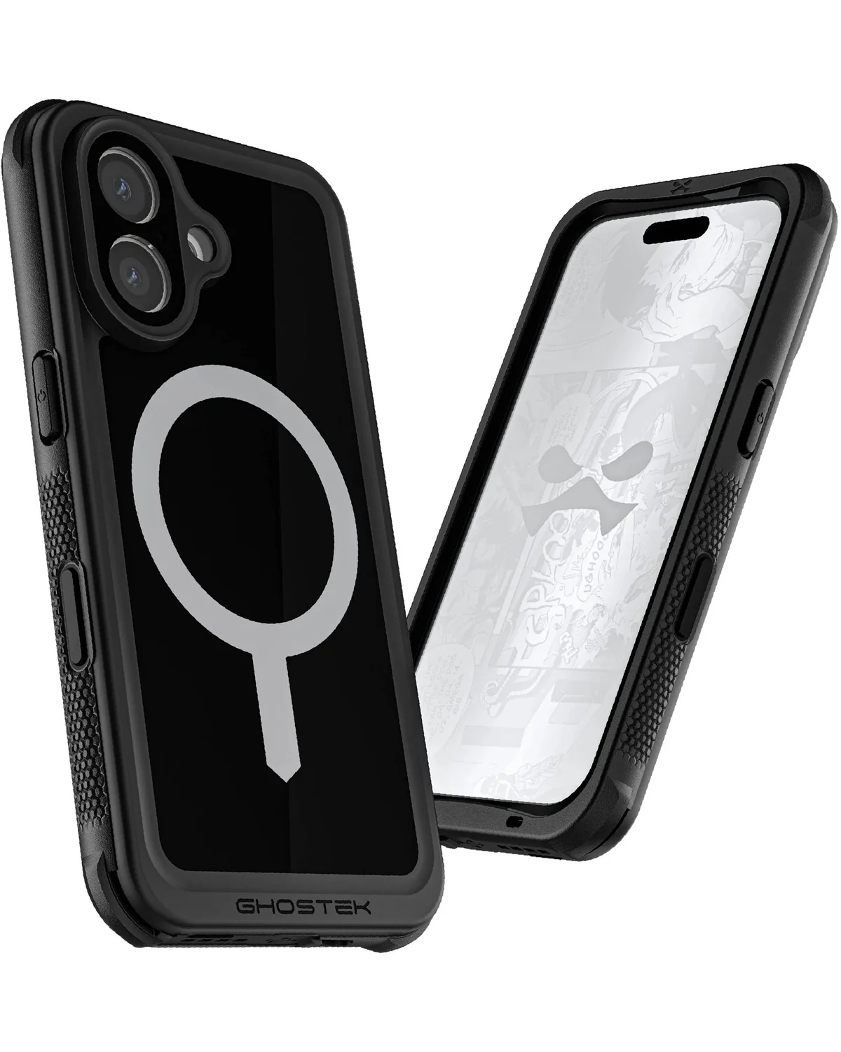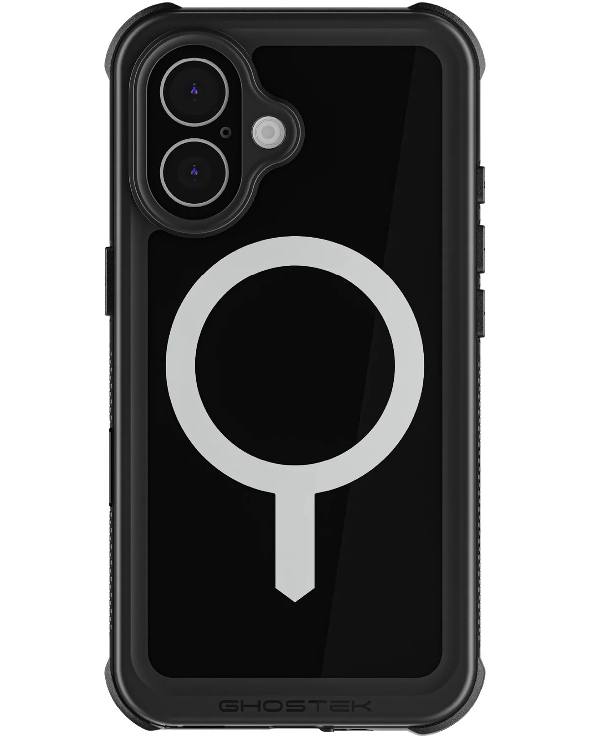 De zwarte Ghostek Nautical Case voor iPhone 16 is schokbestendig, waterdicht tot 6 meter en uitgerust met MagSafe-ondersteuning. Dankzij de holsterclip neem je je toestel veilig mee, waar je ook gaat.