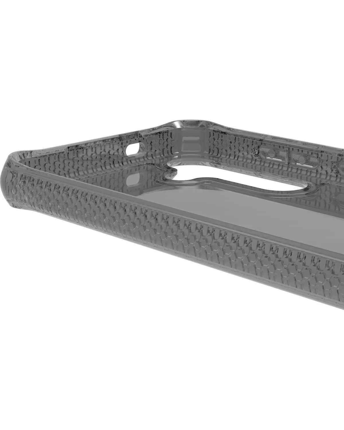 Het ITSKINS Level 2 SpectrumClear_R hoesje voor de Samsung Galaxy S24 5G of Samsung Galaxy S25 5G combineert flexibele bescherming met een slank rookgrijs design en hoogwaardige duurzaamheid.