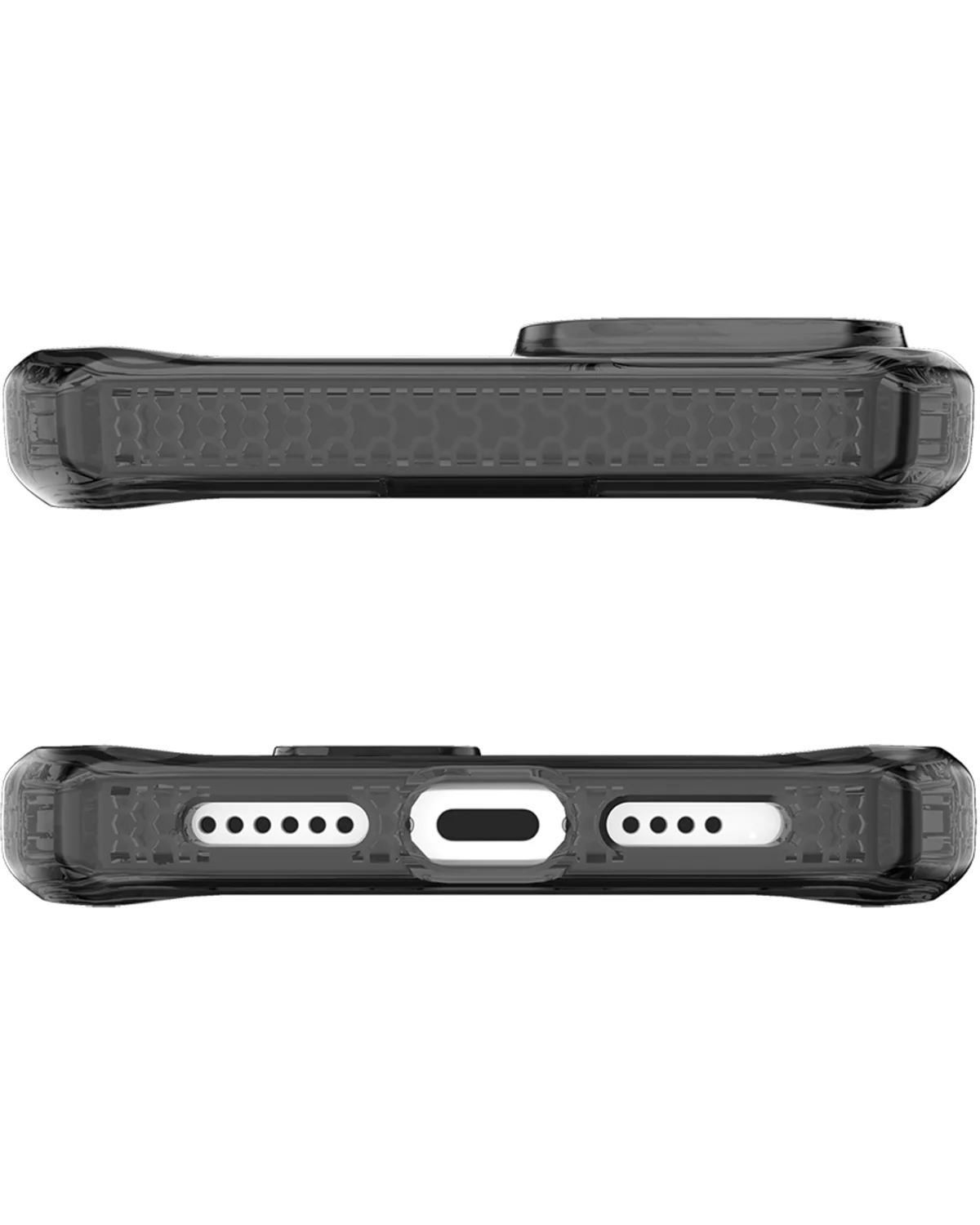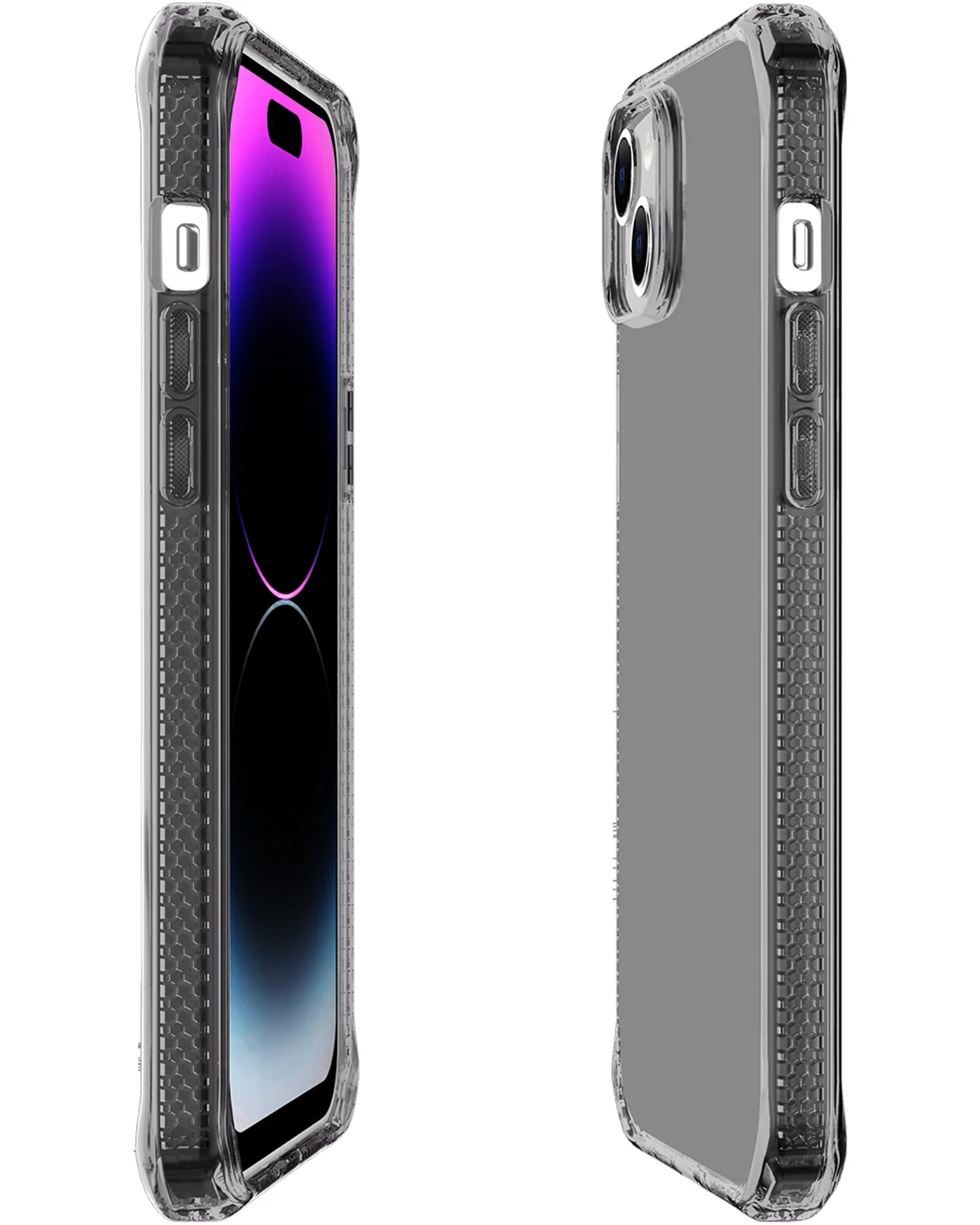 Kies voor slimme bescherming en een duurzame uitstraling met de ITSKINS SpectrumClear_R case voor iPhone 15 in smoke zwart. Deze slanke backcover combineert militaire valbescherming met gerecycled materiaal en een modern, transparant design.