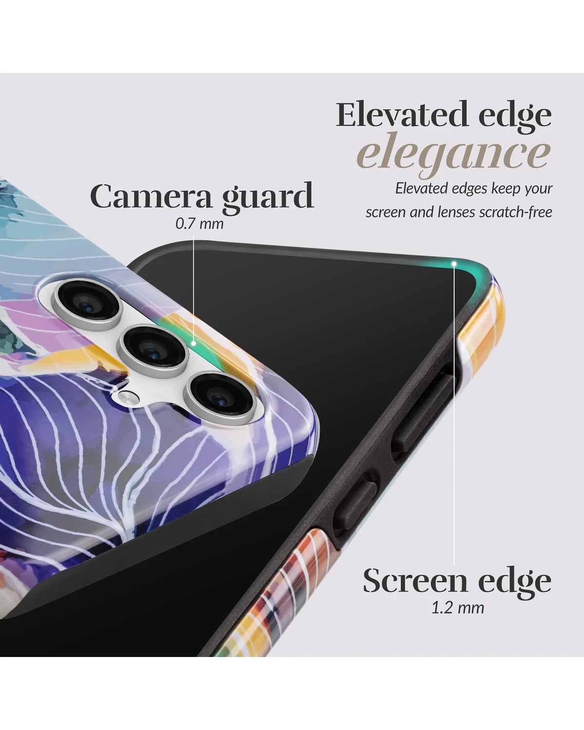 De unieke aquarelprint met rijke paars-, blauw-, turquoise- en oranjetinten geeft dit hoesje een onderscheidende uitstraling die perfect past bij de Samsung Galaxy A26 5G. De glanzende finish versterkt het premium gevoel en de lanyard-ready insert biedt extra draagmogelijkheden voor dagelijks gemak.