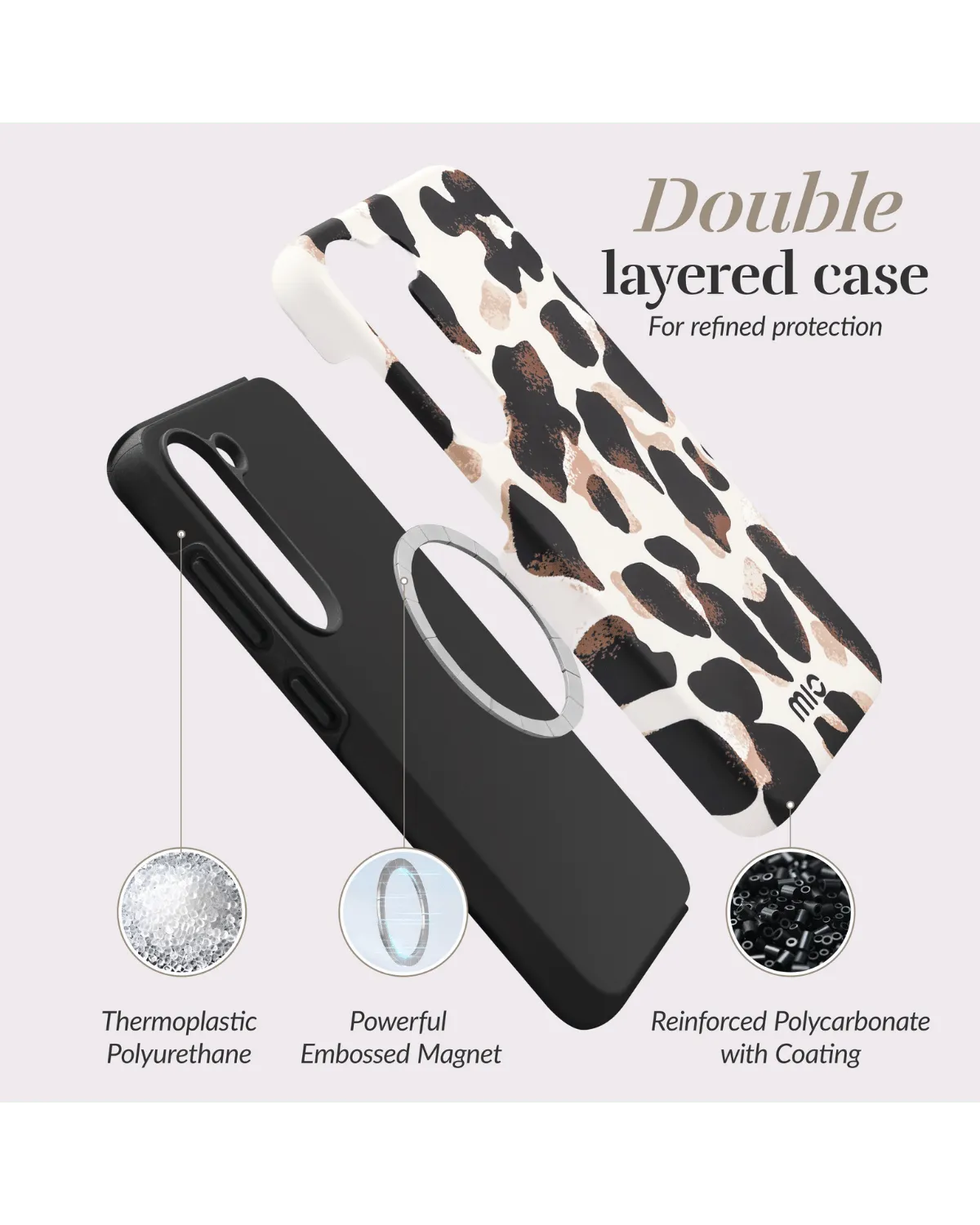 Geef je Samsung Galaxy A55 5G een stoere look met het Mio Leopard MagSafe telefoonhoesje. Dit stevige telefoonhoesje is niet alleen een fashion statement, maar biedt ook uitstekende bescherming en MagSafe-compatibiliteit.