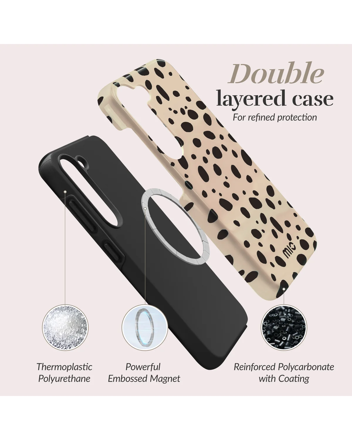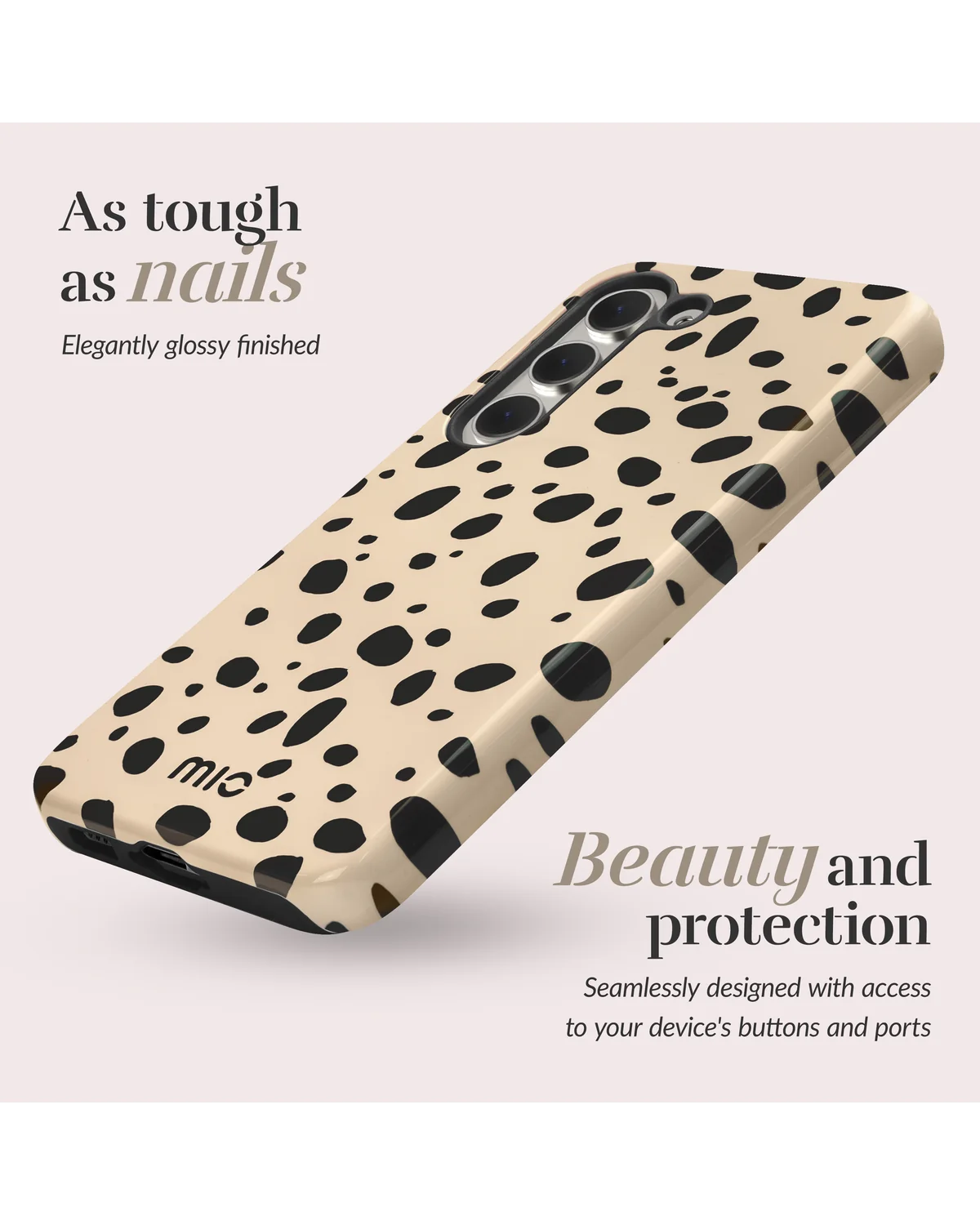 Bescherm je Samsung Galaxy A25 5G met dit stoere Mio Spots MagSafe hoesje. De beige case met zwarte vlekken geeft jouw smartphone een unieke, modieuze uitstraling met extra grip en zekerheid.