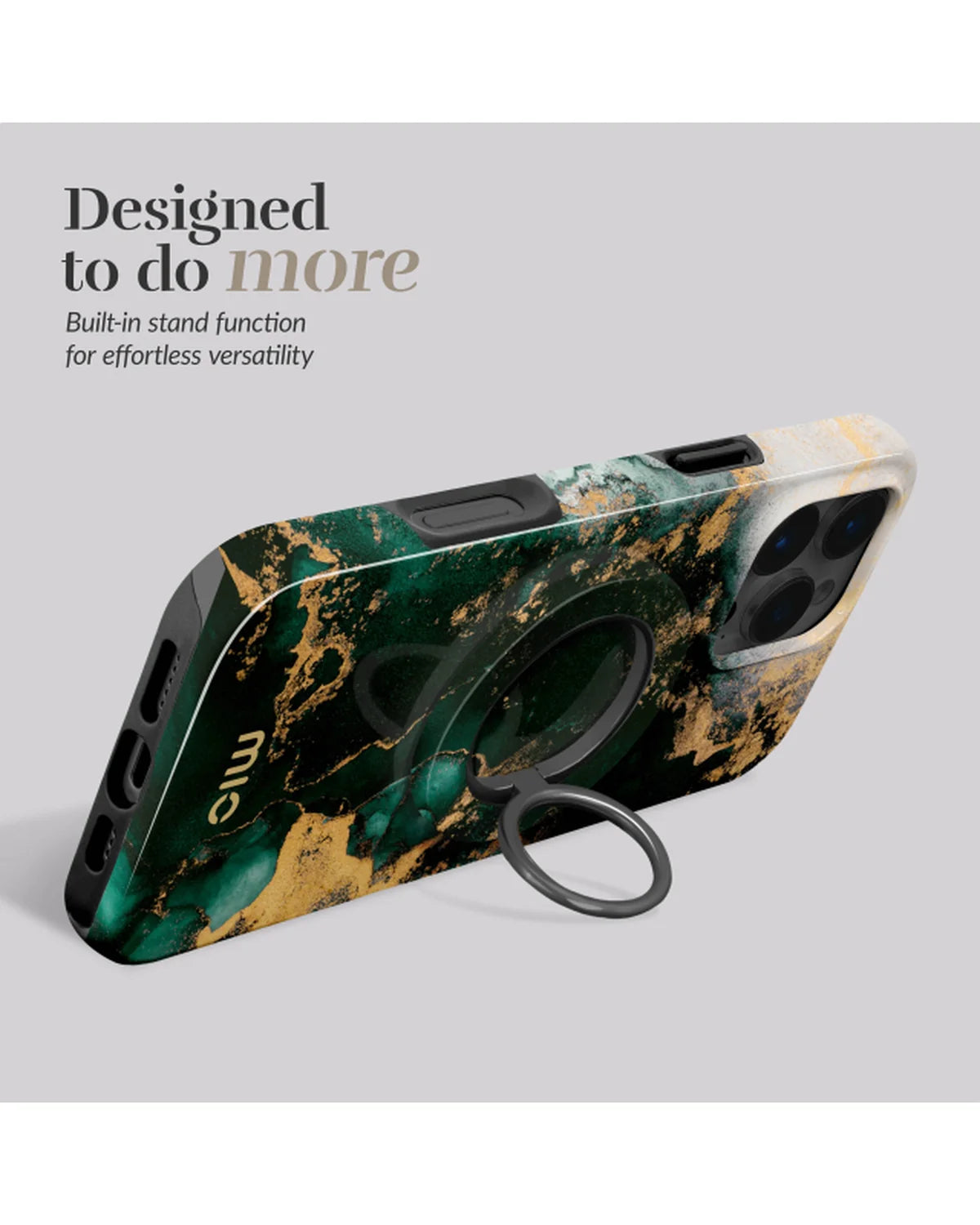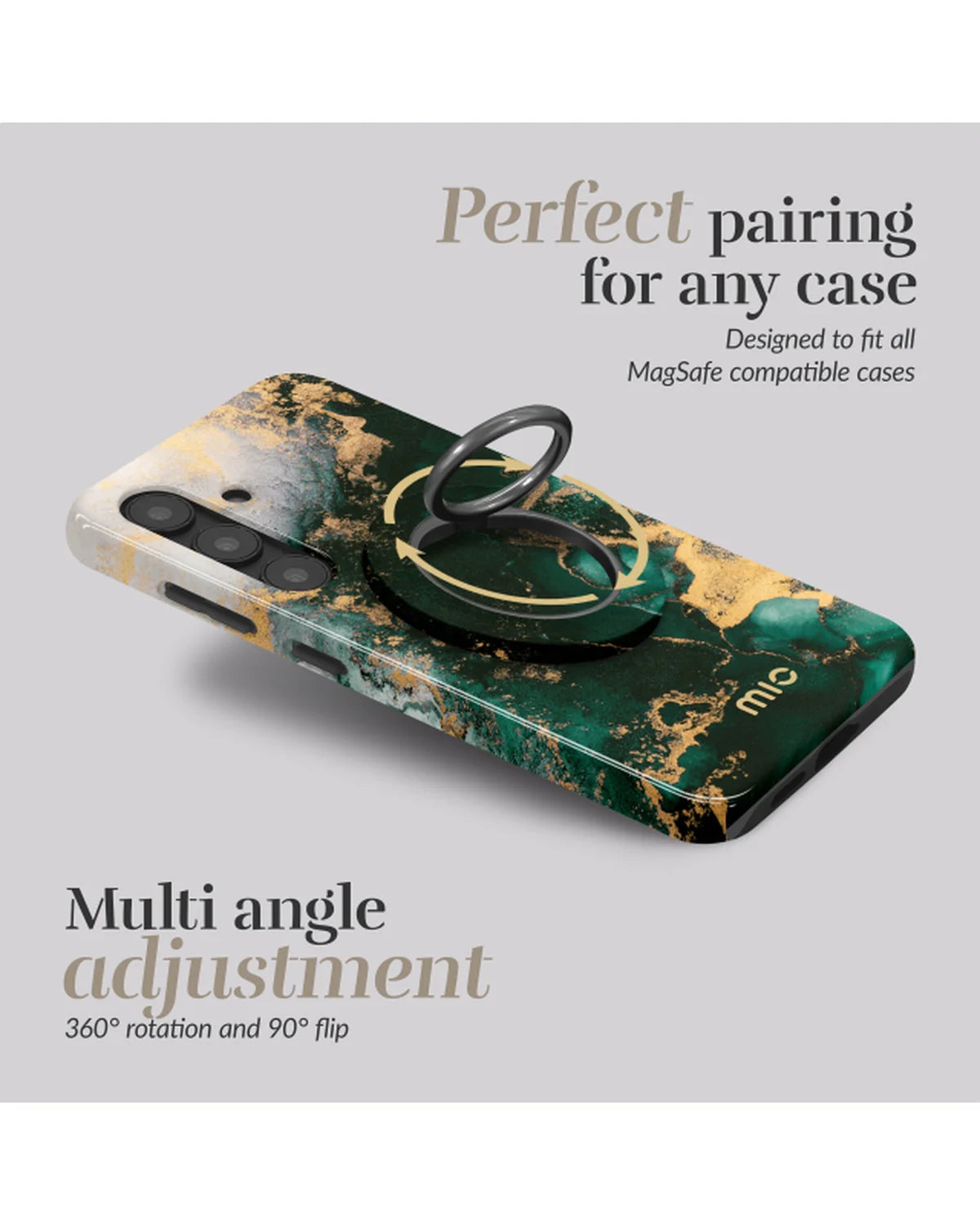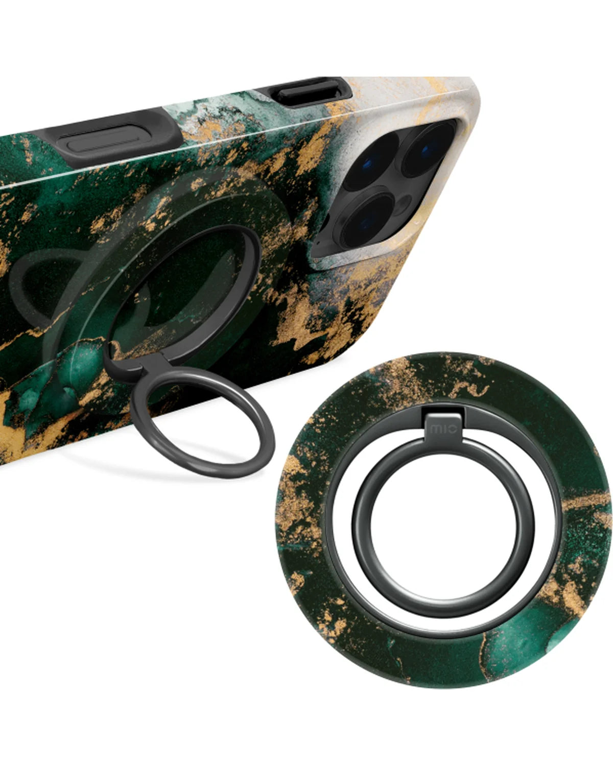 Het diepe marmerpatroon met groene en gouden accenten geeft deze ringhouder een luxe uitstraling. Naadloos te combineren met bijpassende MIO-cases.