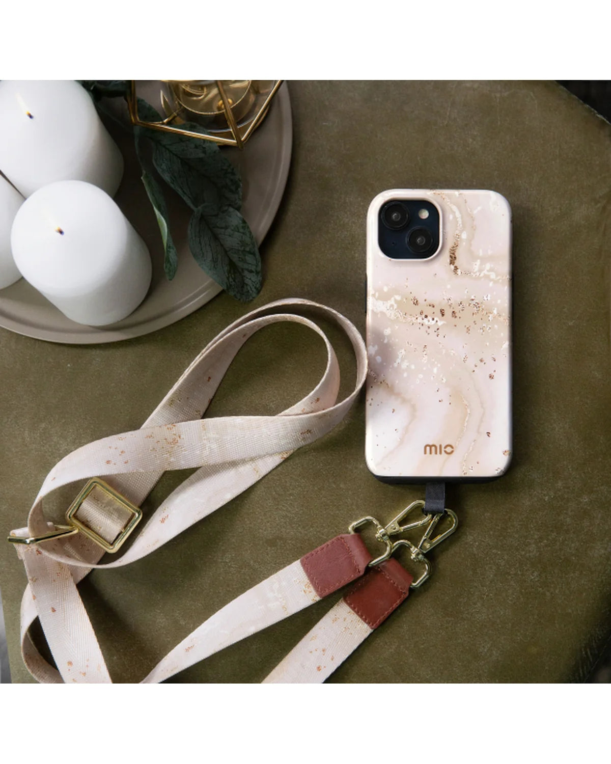 Deze stijlvolle telefoonlanyard in Gold Marble is de perfecte combinatie van functionaliteit en mode. Draag je smartphone veilig en handsfree terwijl je look een elegante upgrade krijgt.
