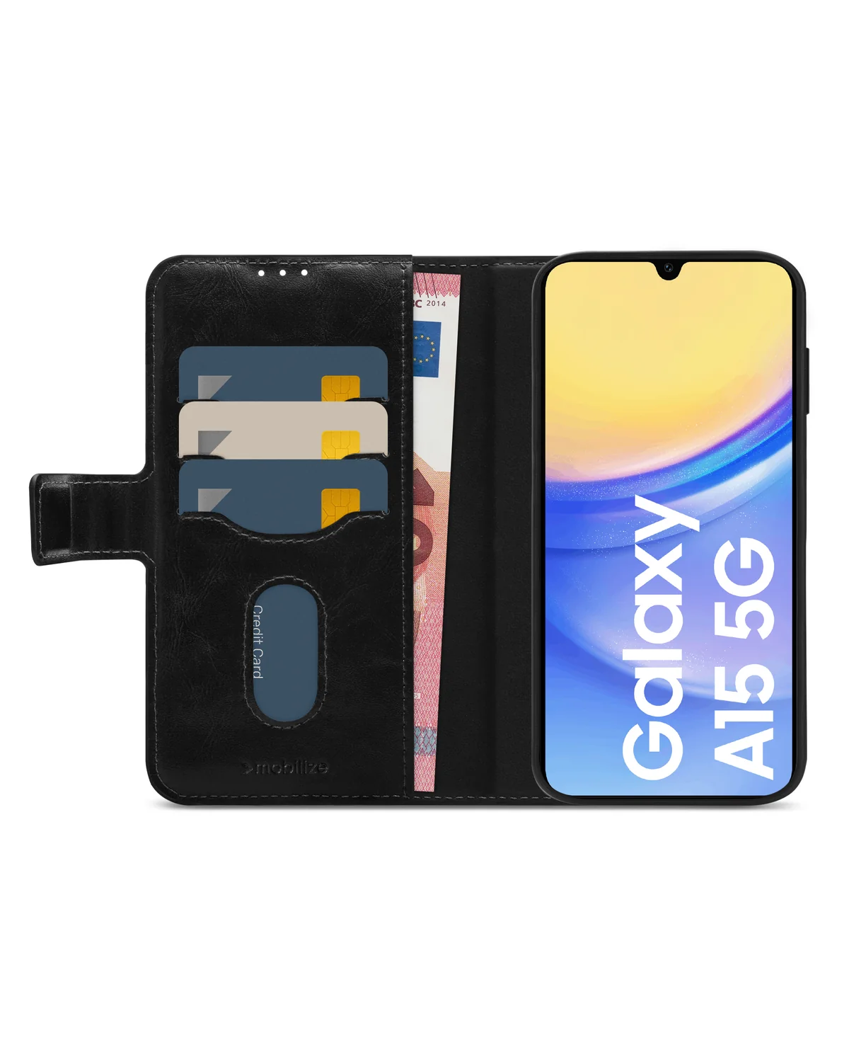 De Mobilize 2in1 MagSafe telefoonhoes voor de Samsung Galaxy A15 4G/5G combineert luxe kunstleer met een flexibele TPU cover en biedt veelzijdige bescherming in stijlvol zwart.