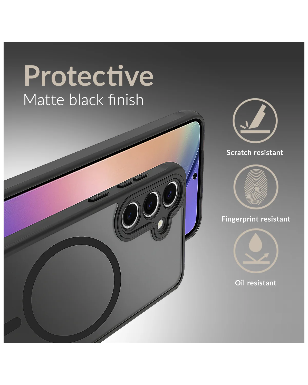 Bescherm je Samsung Galaxy A16 4G/5G met deze zwarte Mobilize MagSafe Hybride Case – een slanke, schokbestendige telefoonhoesje met MagSafe-compatibiliteit en verhoogde schermranden.