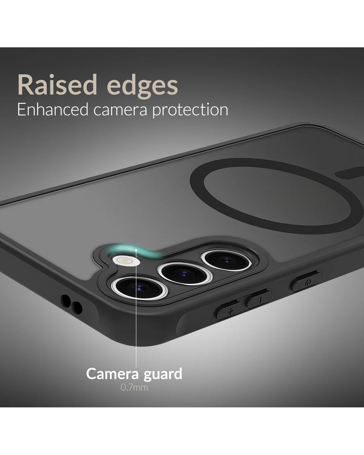 Het hybride ontwerp biedt de perfecte balans tussen bescherming en gebruiksgemak. De verhoogde randen beschermen je scherm en camera tegen krassen, terwijl de antislip TPU-randen zorgen voor extra grip. Dankzij de ingebouwde MagSafe-ring gebruik je moeiteloos magnetische accessoires zoals houders, pasjeshouders of autoladers.