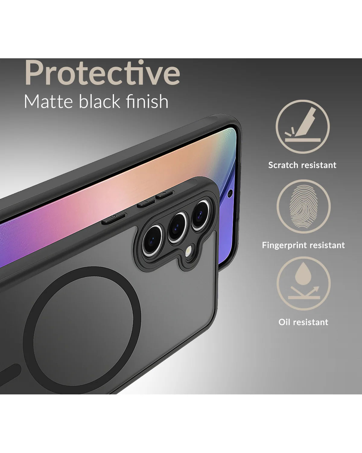 Dit beschermhoesje onderscheidt zich door zijn premium afwerking met metalen buttons en het sterke hybride ontwerp. De matte zwarte finish zorgt niet alleen voor een stijlvolle look, maar voorkomt ook vlekken en krassen, zodat jouw Samsung Galaxy S25 Fe er altijd als nieuw uitziet.