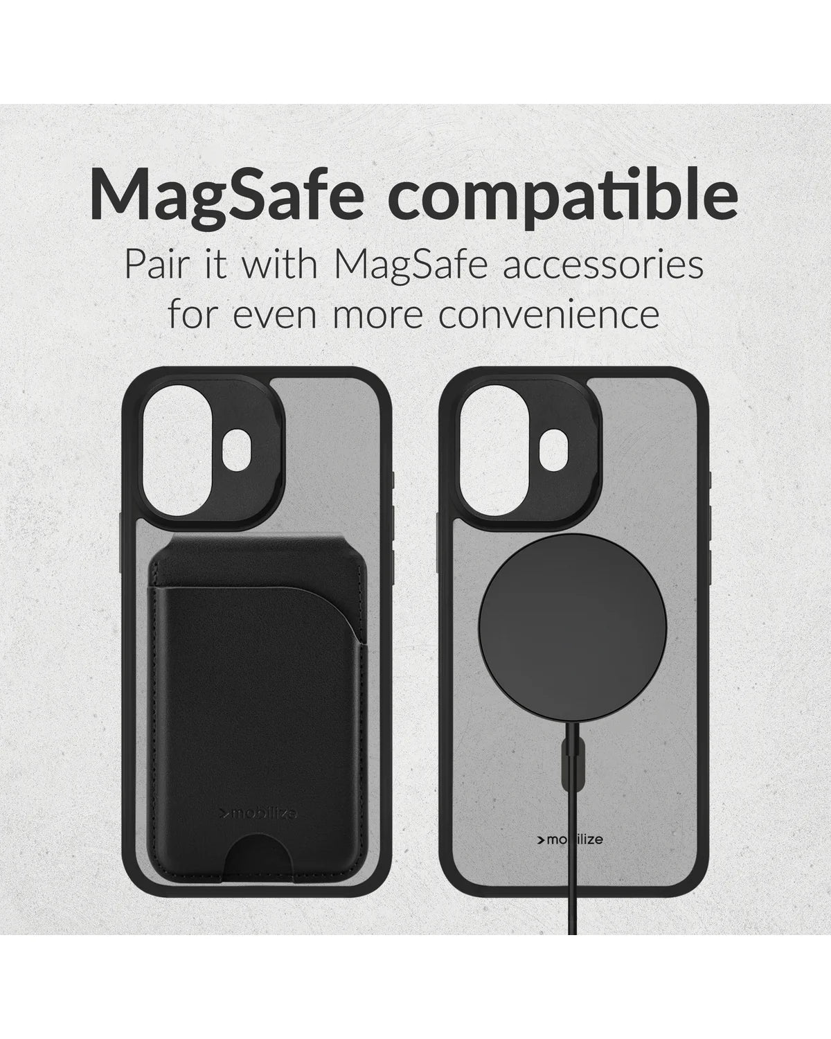 Dit Mobilize telefoonhoesje biedt de ideale combinatie van bescherming en gebruiksgemak. De hybride constructie – een mix van harde polycarbonaat achterkant en schokabsorberende TPU-bumper – beschermt jouw Apple iPhone 16 Pro Max tegen stoten, vallen en krassen. De ingebouwde camerastandaard maakt handsfree videobellen en content maken eenvoudig, terwijl de MagSafe-compatibiliteit draadloos opladen en accessoires moeiteloos ondersteunt.