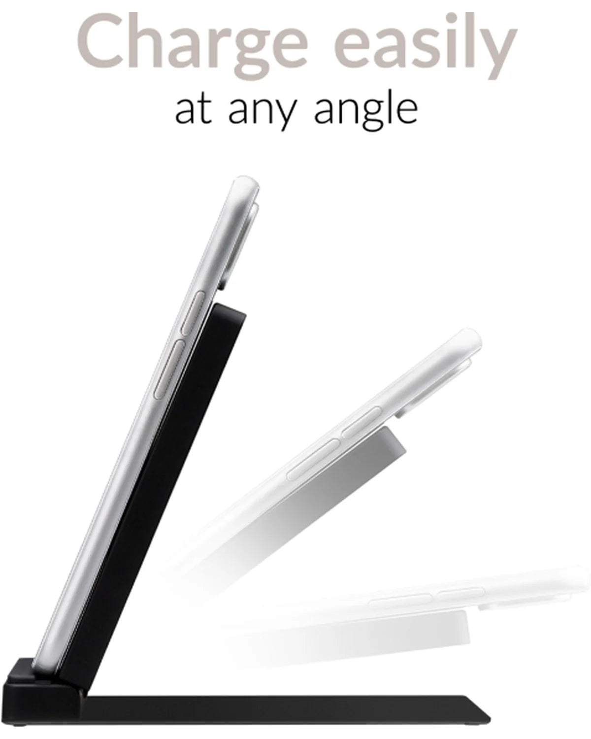 Uniek aan deze lader is het opvouwbare ontwerp waarmee je eenvoudig schakelt tussen plat of stand-modus – perfect voor gebruik onderweg of als standaard op je bureau.