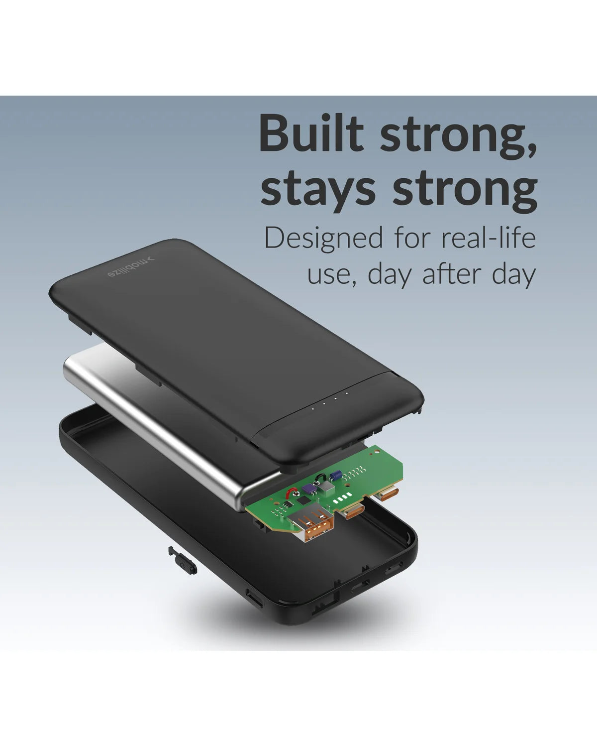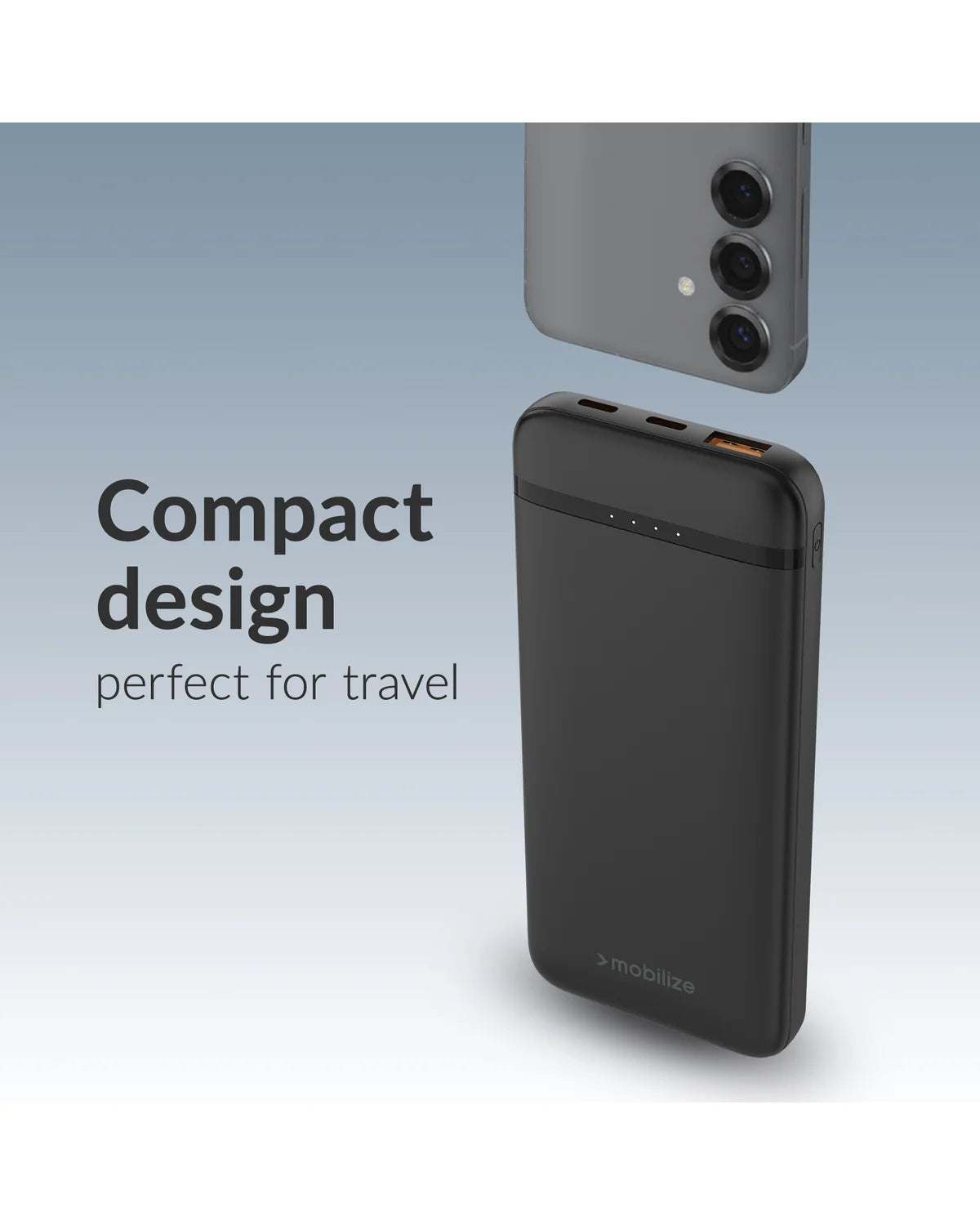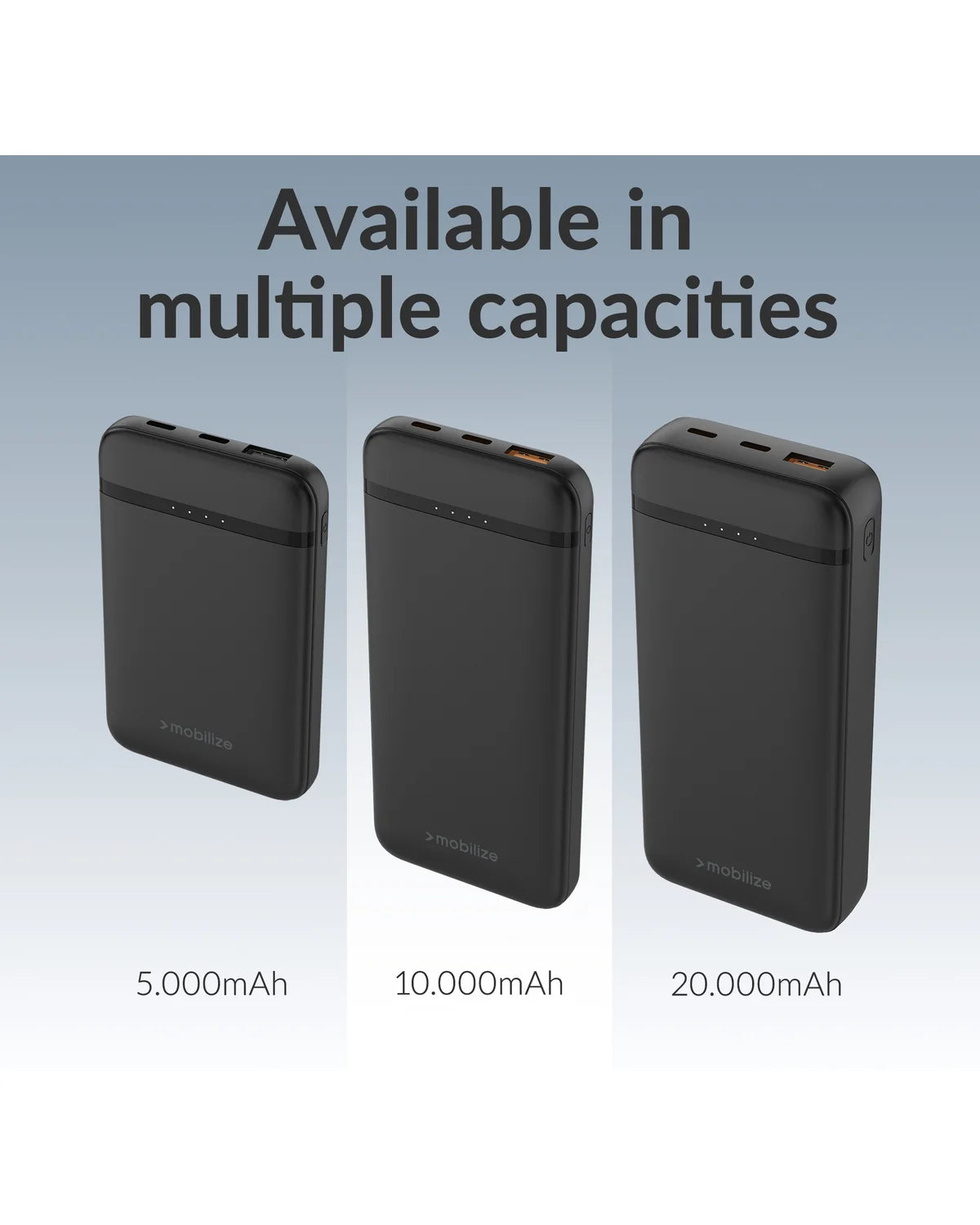 Ga zorgeloos op pad met de Mobilize 10.000mAh powerbank. Krachtig, slank en voorzien van 20W Power Delivery voor razendsnel opladen via USB-C en USB-A.