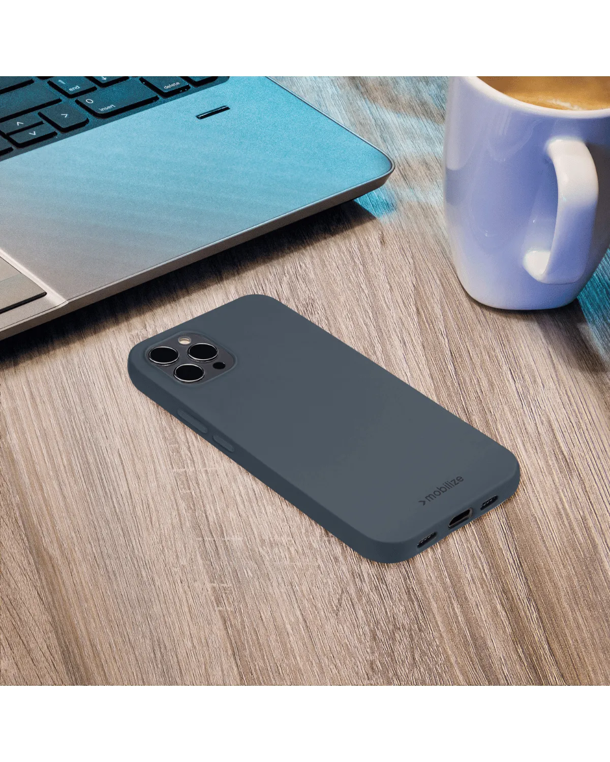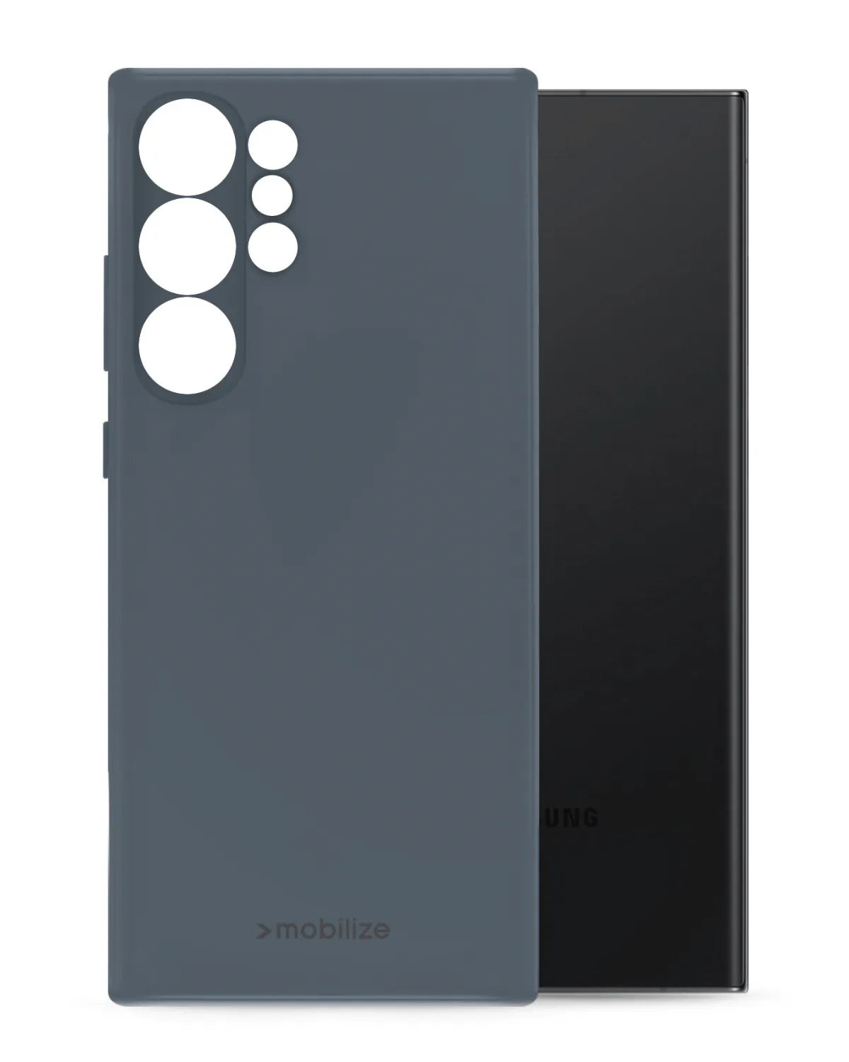Matblauwe Mobilize Gelly Case voor Samsung Galaxy S23 Ultra, met precieze camera-uitsparingen voor optimale bescherming.
