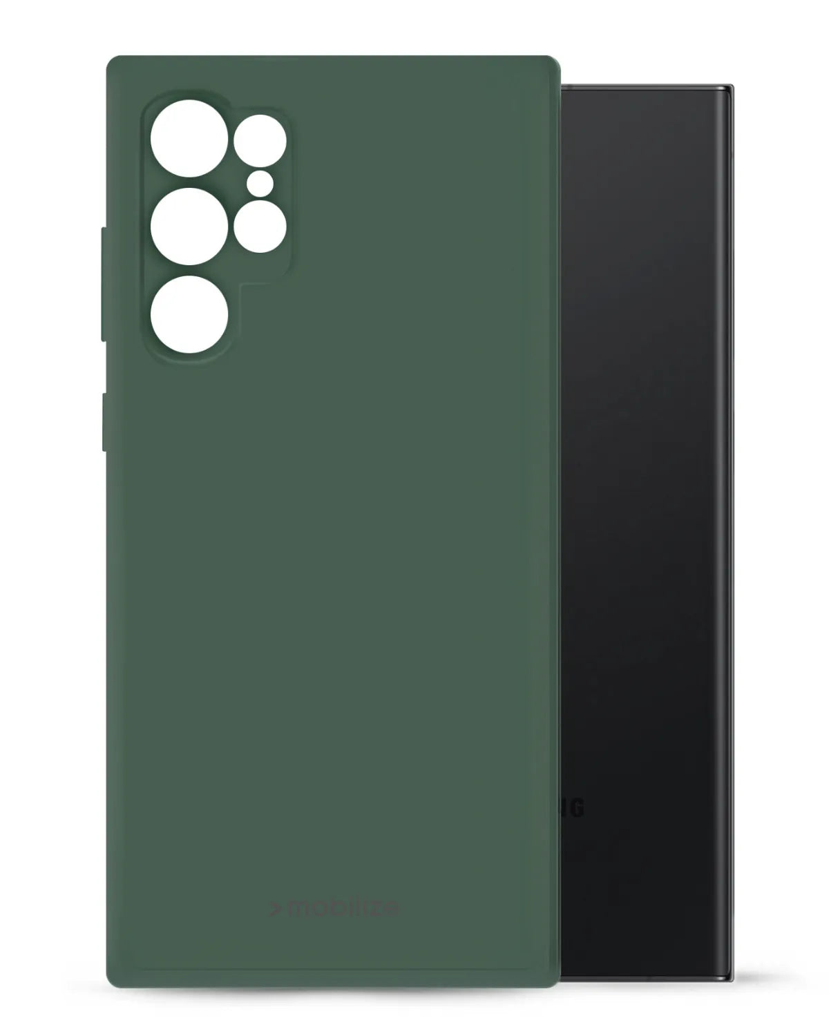 Matgroen Mobilize Gelly Case voor Samsung Galaxy S23 Ultra, met nauwkeurige camera-uitsparingen.