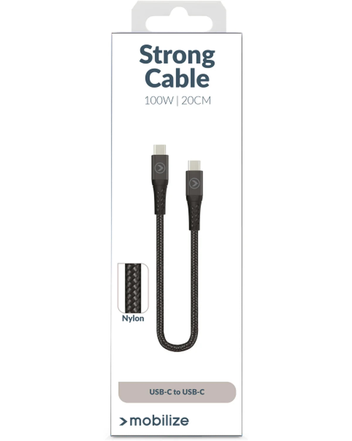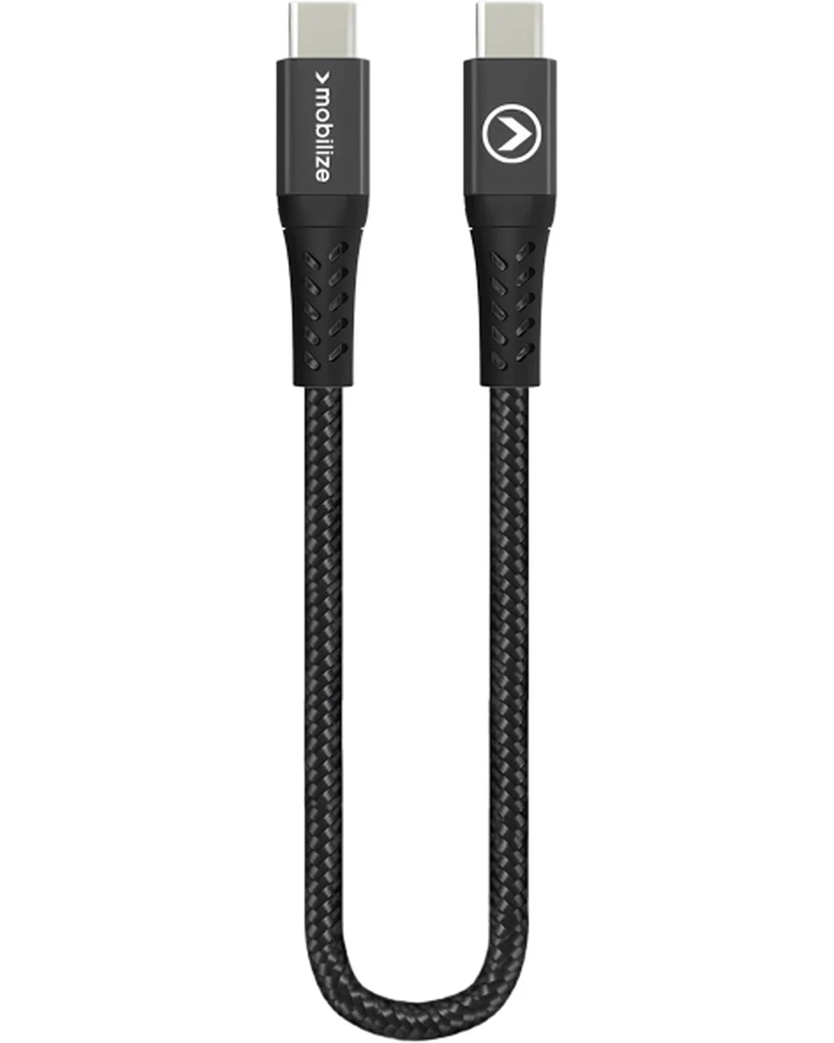 Kies voor kracht én compactheid met deze extra korte USB-C naar USB-C kabel van Mobilize. Met 100W vermogen en gevlochten nylon is deze kabel ideaal voor onderweg of op je bureau.