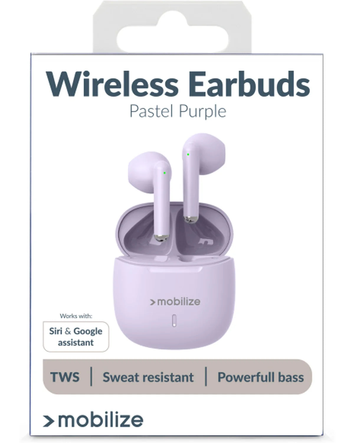 Voeg een vleugje kleur toe aan je dag met deze pastel paarse in-ear oordopjes van Mobilize. Tot 20 uur luistertijd met oplaadcase, IPX4-bescherming, touchbediening en Bluetooth 5.3 – perfect voor onderweg, thuis of op werk.