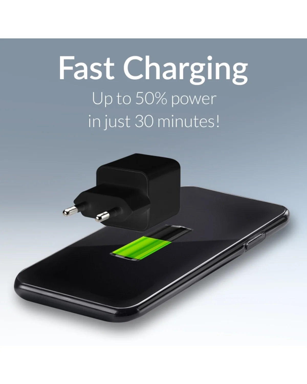 Laad je toestel in slechts 30 minuten tot 50% op. De intelligente stroomaanpassing voorkomt oververhitting en verlengt de levensduur van je batterij. Ideaal voor thuis, op kantoor of onderweg – krachtig, duurzaam en milieubewust compact.