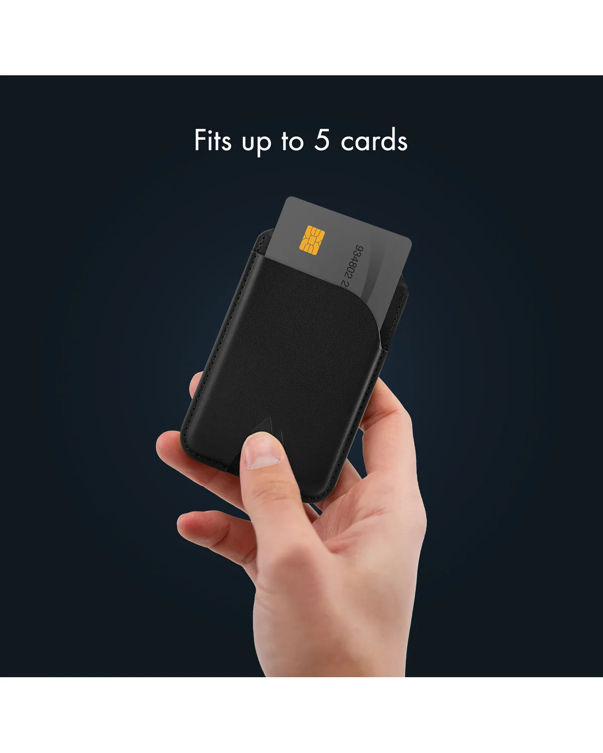 De krachtige MagSafe-magneten zorgen voor een veilige bevestiging, terwijl het strakke PU-leer een stijlvolle uitstraling biedt. Met ruimte voor vijf pasjes, inclusief een transparante ID-sleuf, heb je altijd je essentials bij de hand. De geïntegreerde standaard klap je eenvoudig uit voor handsfree videobellen, content bekijken of werken onderweg.