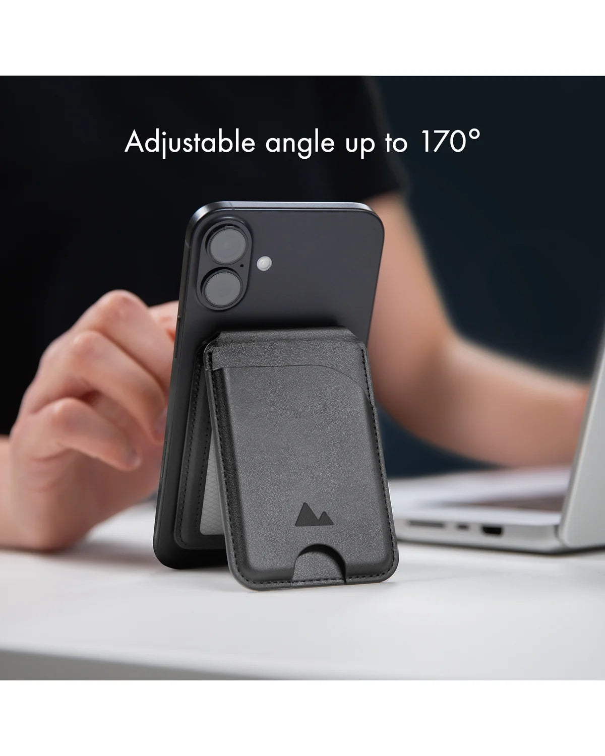 Deze kaarthouder onderscheidt zich door zijn luxe afwerking, krachtige MagSafe-verbinding en multifunctionele ontwerp met uitklapbare stand.