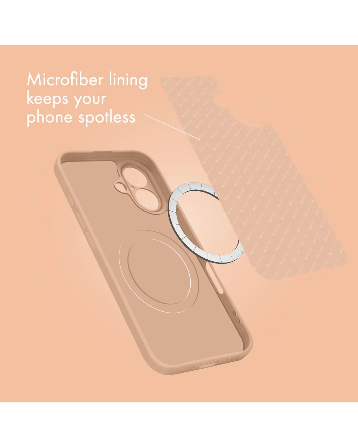 De ingebouwde extra sterke MagSafe-magneetring zorgt voor een stevige en stabiele verbinding met je favoriete accessoires, zodat je moeiteloos opladers, houders en portemonnees bevestigt zonder dat de case verschuift. Het flexibele TPU-materiaal biedt uitstekende bescherming tegen stoten en krassen, terwijl de zachte microvezel voering aan de binnenzijde je toestel beschermt tegen fijne beschadigingen. Dankzij de slimme, toestel specifieke camera-uitsparing blijft de elegante uitstraling van je iPhone behouden en is je camera optimaal beschermd zonder een onnodig grote opening.