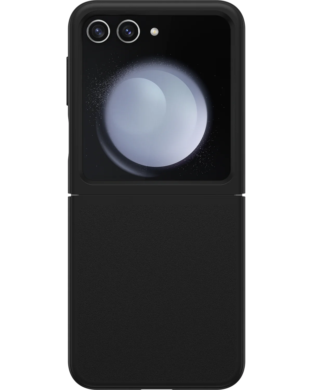 De zwarte Otterbox Thin Flex Case voor de Samsung Galaxy Z Flip 6 biedt stevige bescherming in een strak, minimalistisch ontwerp met een comfortabele grip.