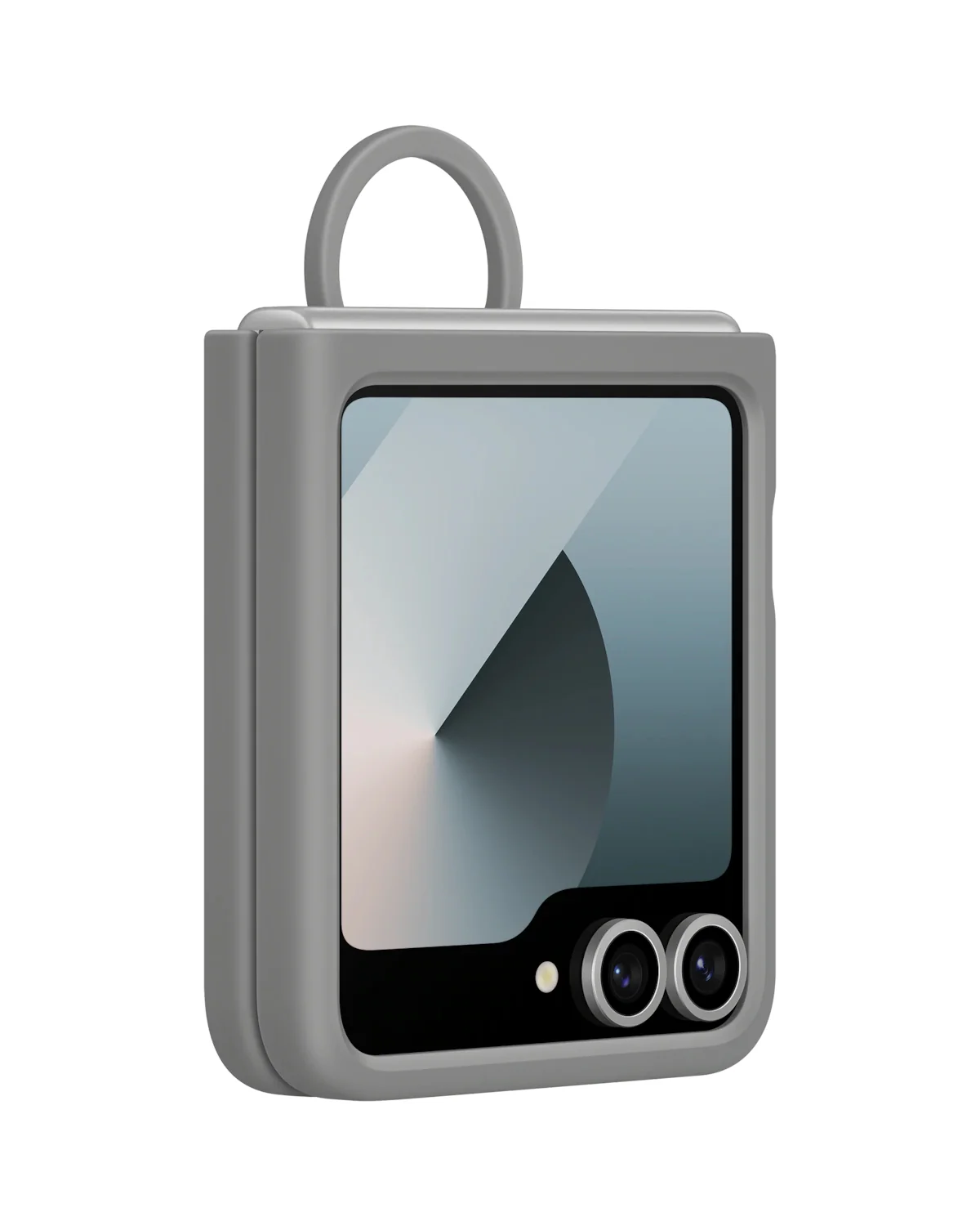 Het grijze Samsung siliconen hoesje met ring voor de Galaxy Z Flip 6 is strak, minimalistisch en functioneel. Ideaal voor wie houdt van een cleane en slimme look.