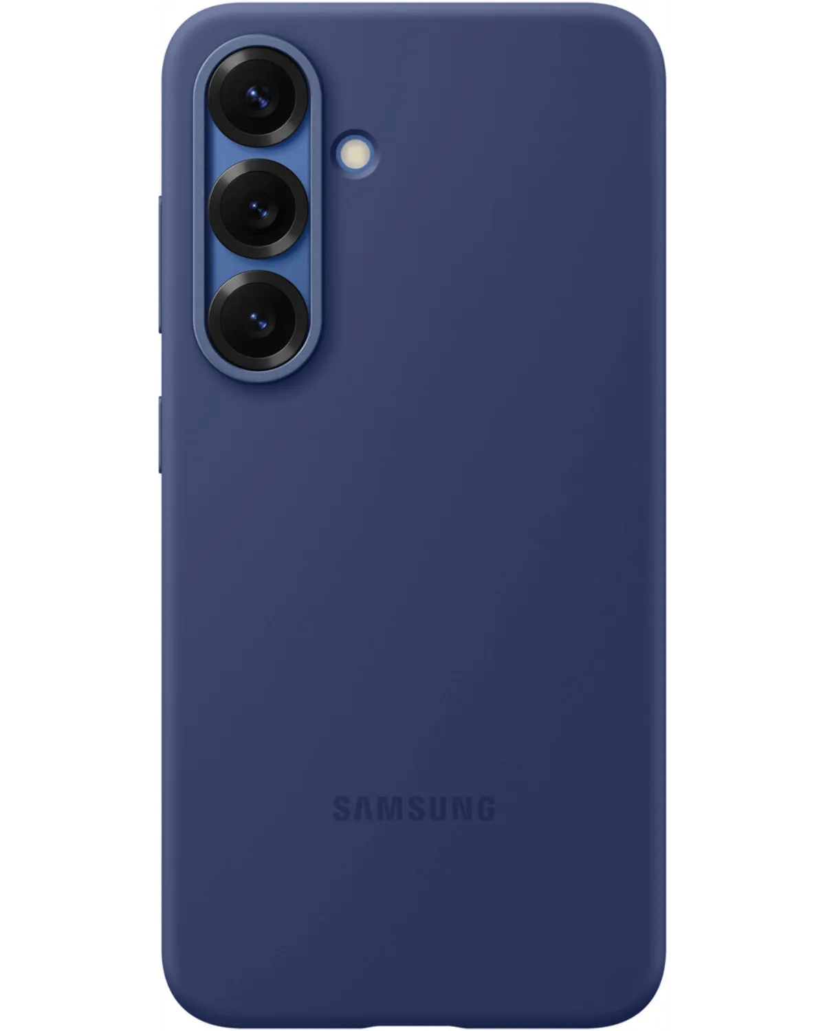 Blauwe siliconen Samsung hoesje voor Galaxy S25 5G met een minimalistisch ontwerp en zachte afwerking.