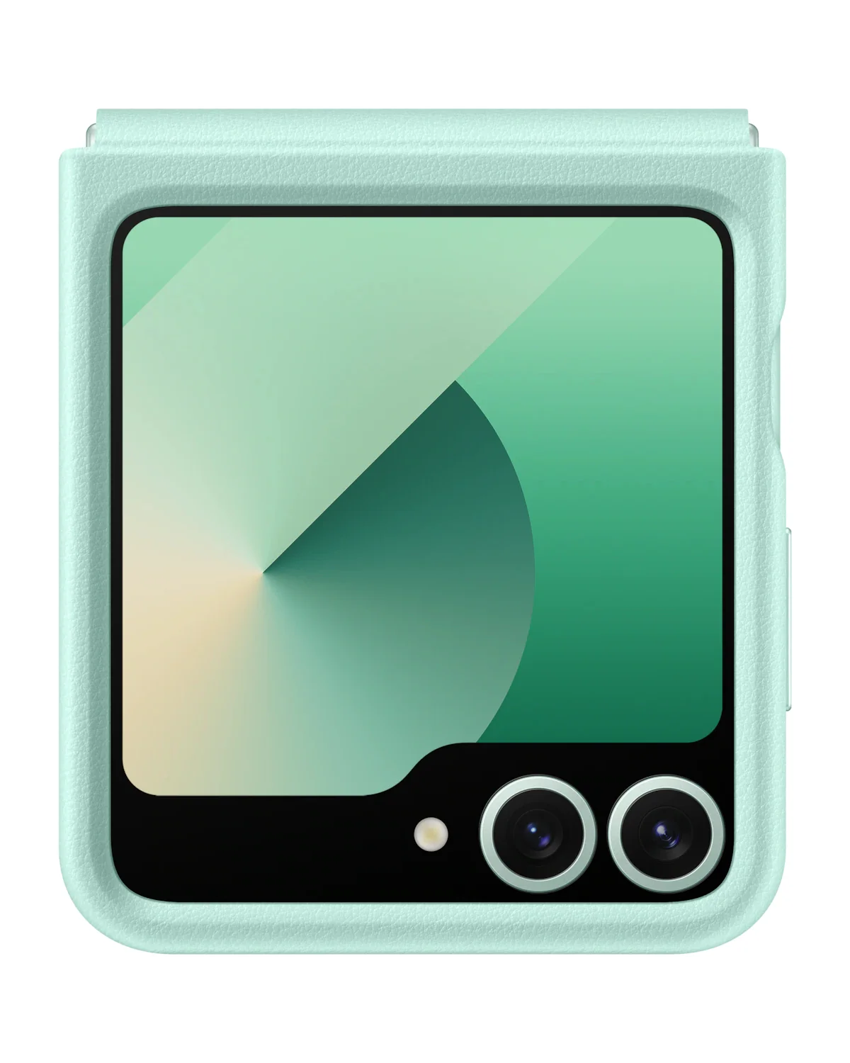 Het mintgroene Samsung KindSuit Case telefoonhoesje voor de Galaxy Z Flip 6 combineert een stijlvolle uitstraling met duurzame materialen en slimme bescherming voor dagelijks gebruik.