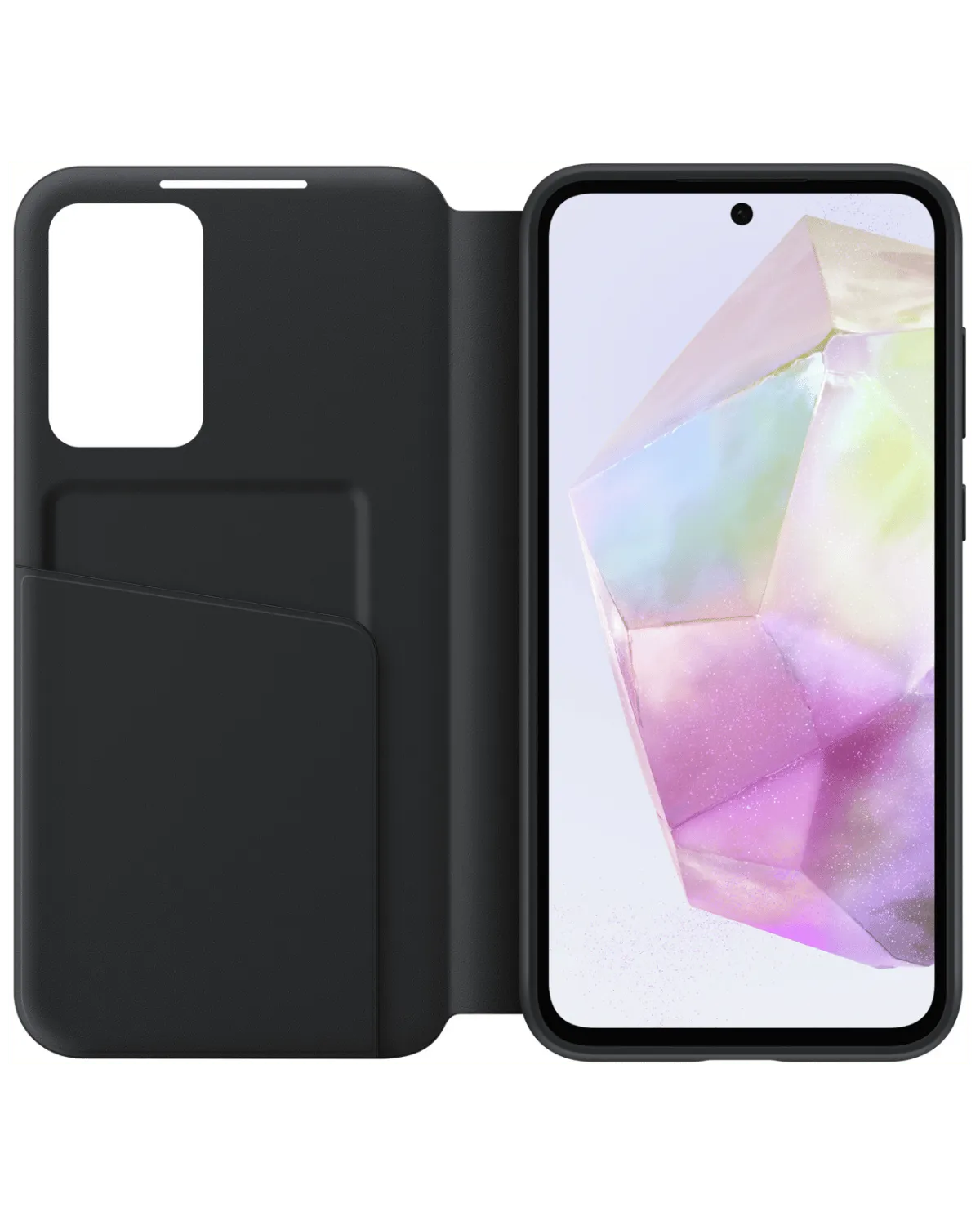 Dit originele zwarte Samsung Clear View Cover telefoonhoesje voor de Galaxy A35 5G biedt slimme functionaliteit, stevige bescherming én een modern design in één stijlvolle bookcase.
