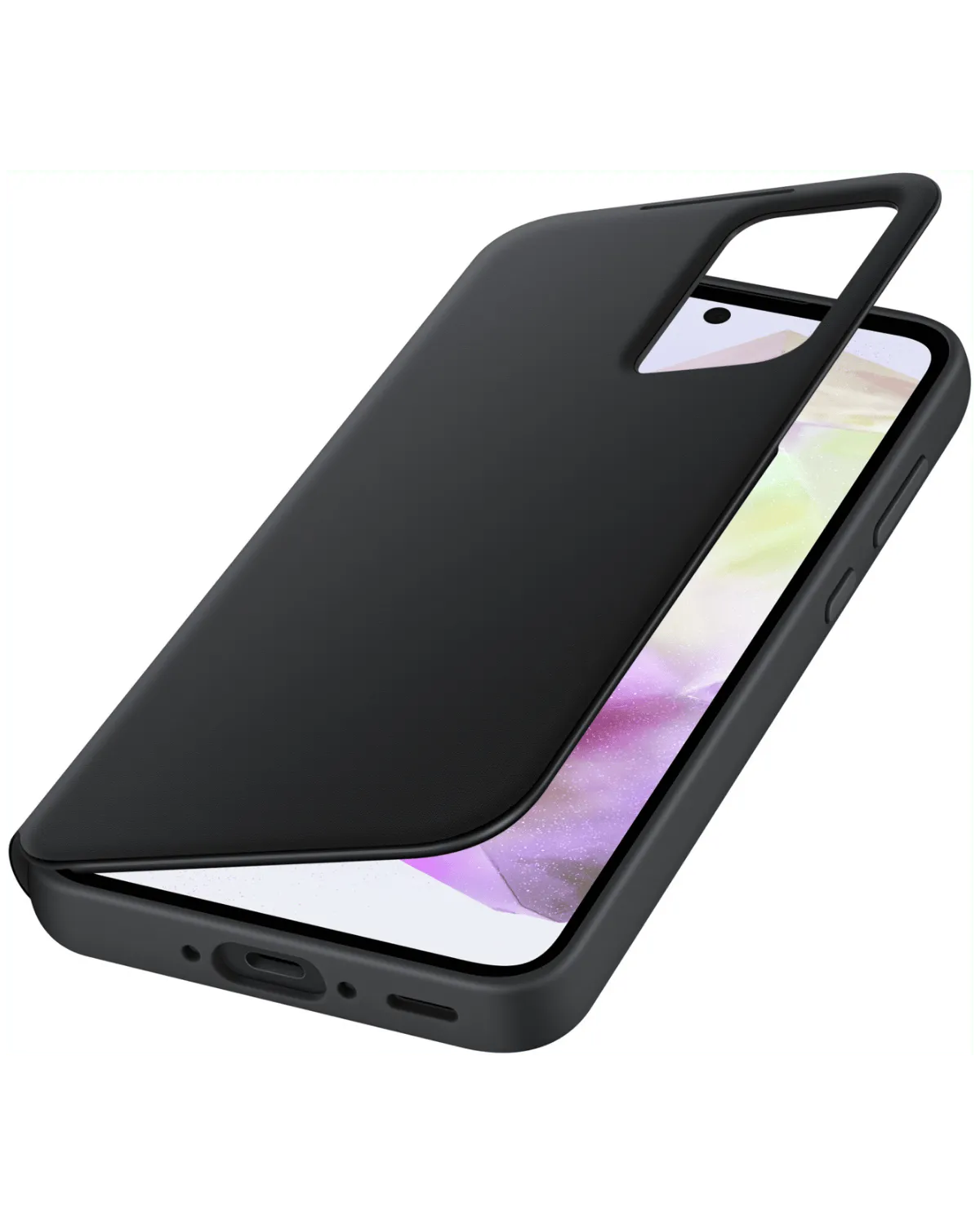 De Smart Clear View Cover is ontworpen voor optimaal gemak. Dankzij het transparante venster aan de voorzijde zie je direct de tijd, meldingen of inkomende oproepen – zonder het hoesje te openen. Je kunt meldingen swipen of gesprekken aannemen met het hoesje gesloten. De cover beschermt zowel de voor- als achterkant van je toestel en bevat een handige kaartsleuf aan de binnenzijde.