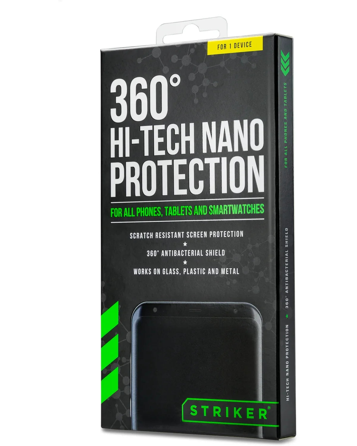 Deze Striker Coating 360° High Tech Nano Protection vormt een onzichtbare antibacteriële laag rond je smartphone, tablet of smartwatch. Bacteriën krijgen 99,8% minder kans, terwijl je toestel ook beter beschermd is tegen krassen, vlekken en vuil.