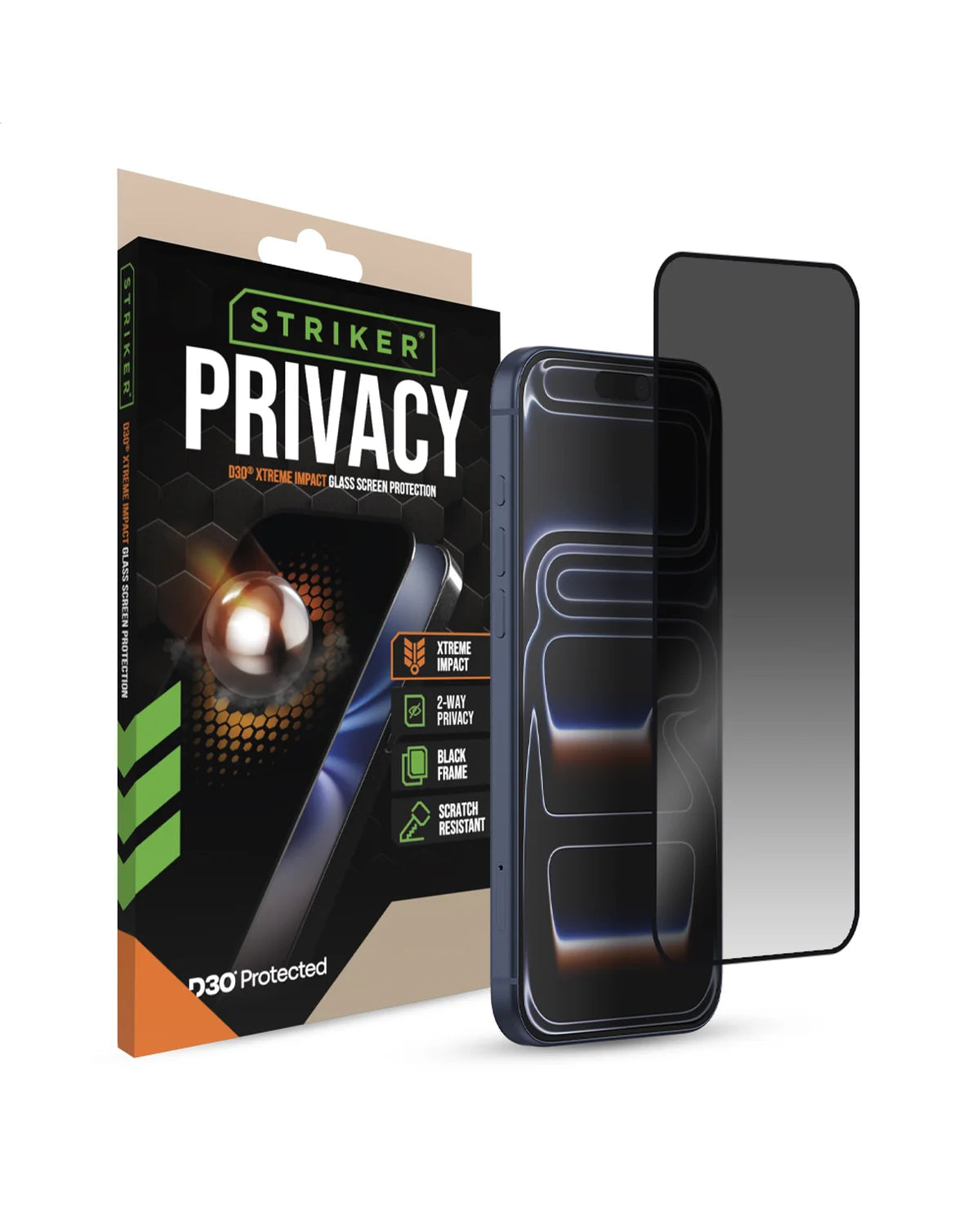 De Apple iPhone 16 Pro Max / 17 Pro Max blijft onbeschadigd met de Striker D3O Xtreme Impact Privacy Glass screenprotector. Maximale bescherming met privacy functie en haarscherpe helderheid.