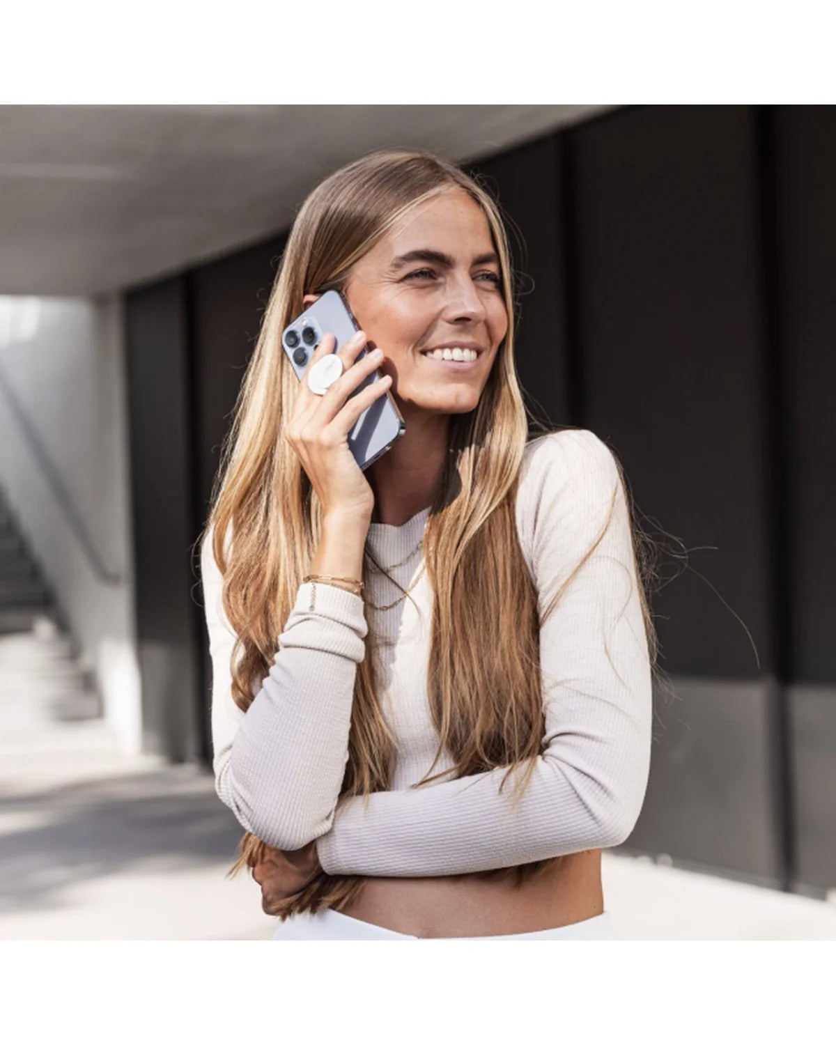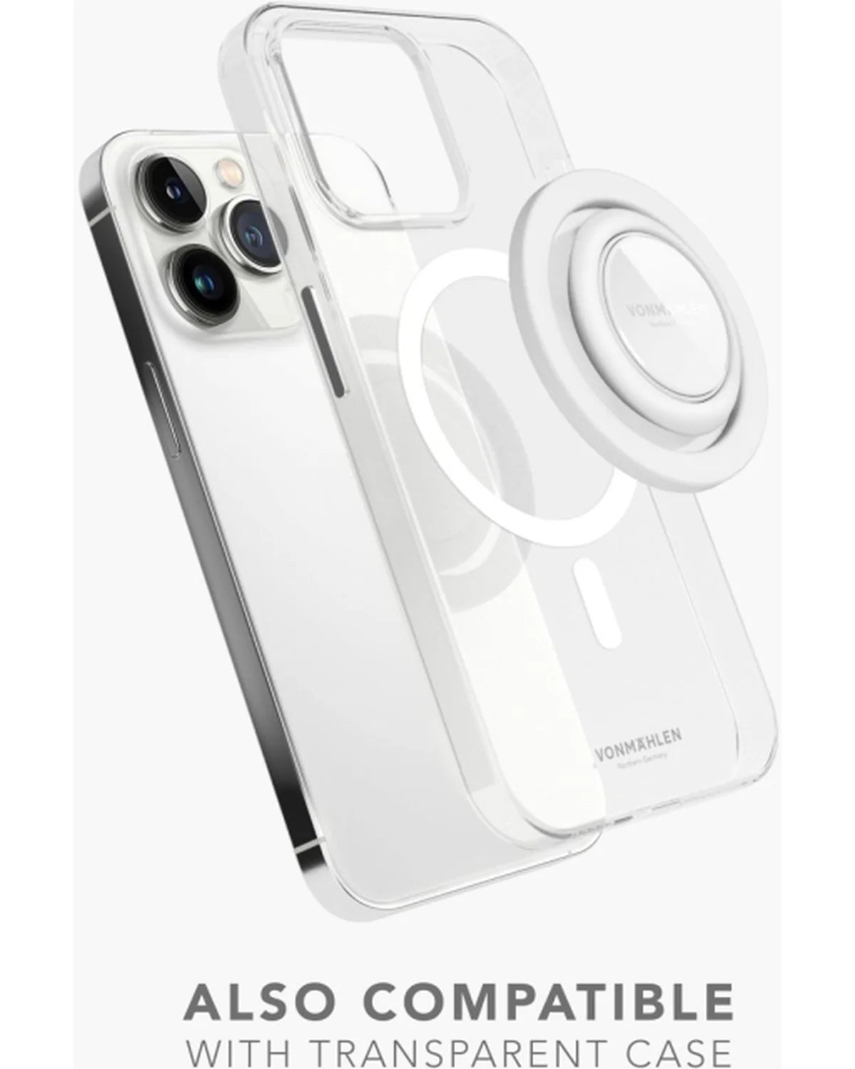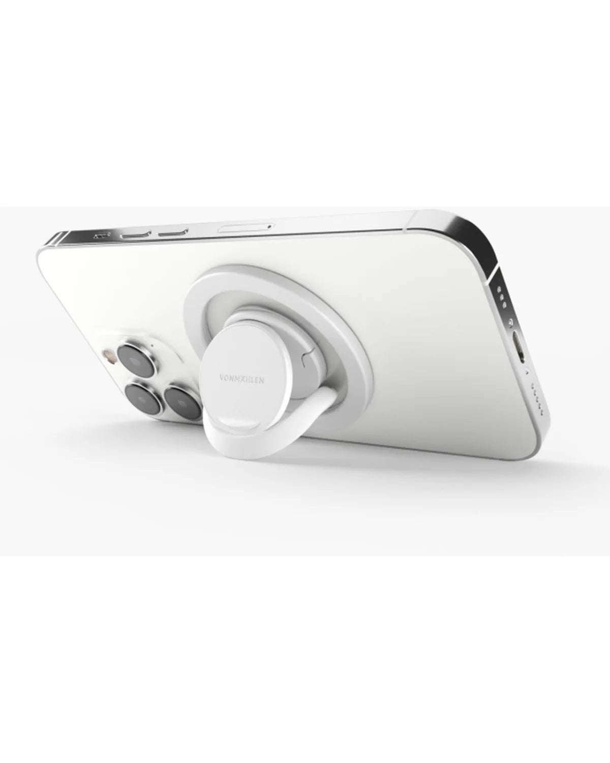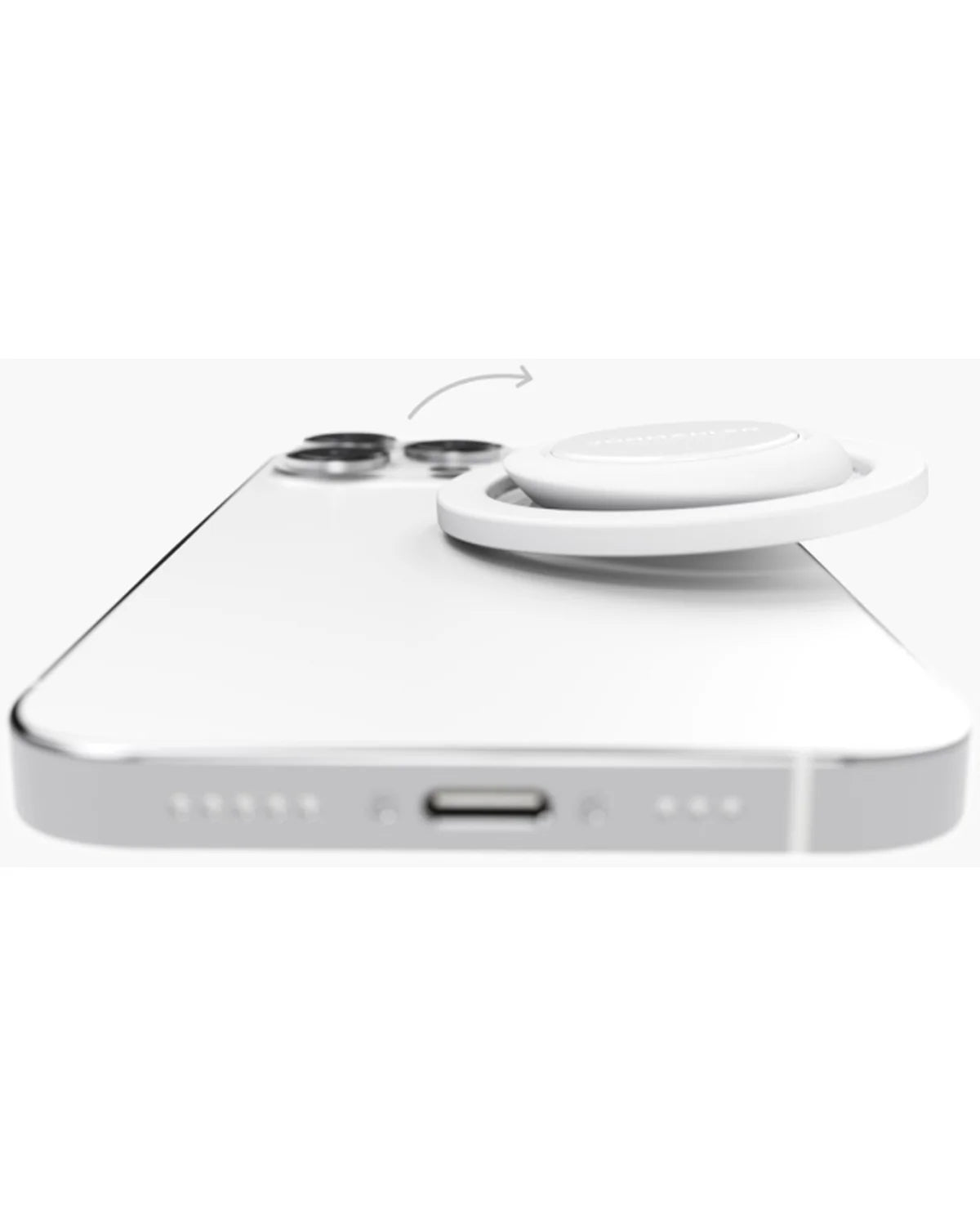 De ring is afneembaar voor draadloos opladen en 360 graden draaibaar. Werkt ook perfect met transparante MagSafe-cases van andere merken.